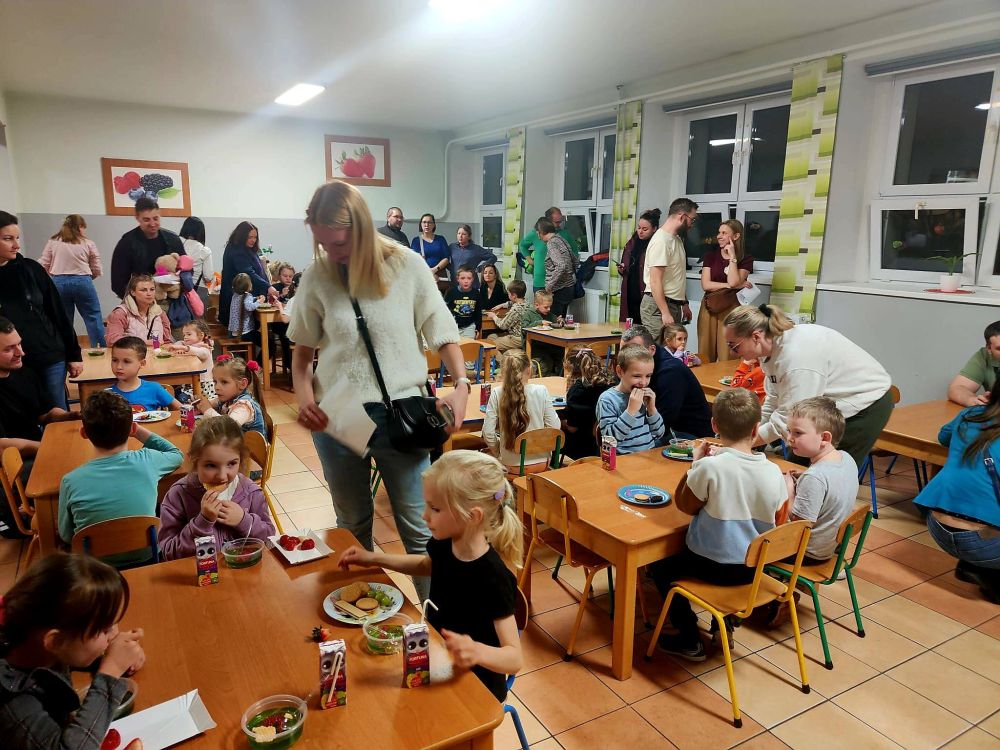 Nie zabrakło również chwili na kawę i rozmowę – dyrektor, nauczyciele oraz pracownicy szkoły mieli możliwość spotkać się z rodzicami, odpowiedzieć na pytania i przybliżyć atmosferę naszej społeczności. Spotkanie zakończyliśmy słodkim, wspólnym poczęstunkiem.