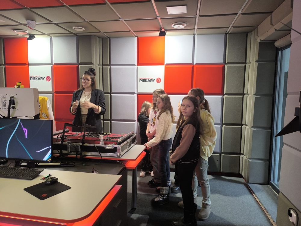 W Rozgłośni mieli możliwość podglądu pracy prezentera podczas programu na żywo, obserwować pracę DJ-a i obsługę konsoli didżejskiej, przyjrzeć się tempu pracy w Newsroomie oraz warsztatowi pracy realizatora i producenta anteny Radia Piekary. Wizyta uczniów to czas szczególny dla pracowników tej popularnej i lubianej stacji, bo Radio Piekary w 2026 roku obchodzi jubileusz 30-lecia istnienia. Gratulacje!