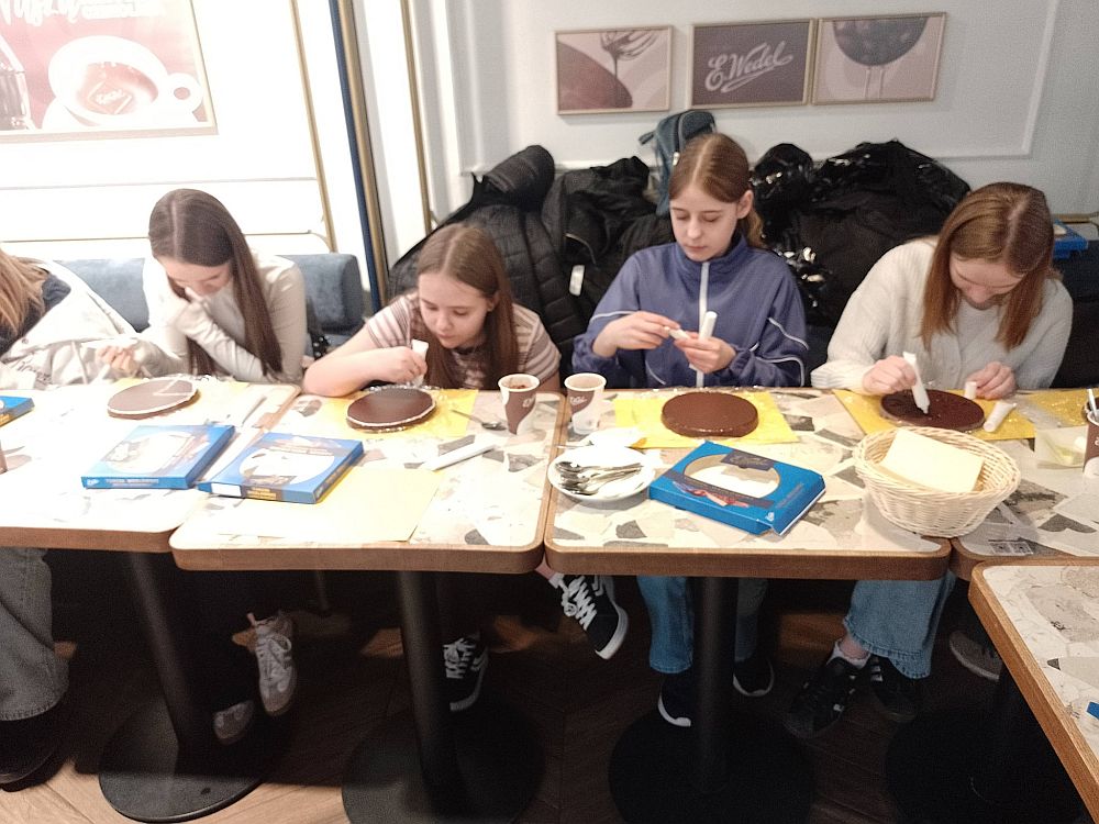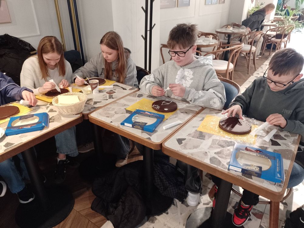 Czekoladę kochają wszyscy. Jest to składnik używany do niemalże każdego dania. O czekoladzie powstało wiele książek, a jej aromatyczny zapach potrafi od razu poprawić humor. O tych wszystkich zaletach czekolady dowiedzieli się uczniowie klasy 6a, którzy, w ramach Dnia Kobiet, udali się na warsztaty do Pijalni Czekolady E.Wedla. Uczniowie poznali historię firmy, dekorowali torciki, a nawet rywalizowali ze sobą w słodkich grach. Najważniejszym punktem była oczywiście degustacja gorącej czekolady z przepysznymi piankami. Ten wyjazd z pewnością pozostawi po sobie słodki ślad w pamięci.