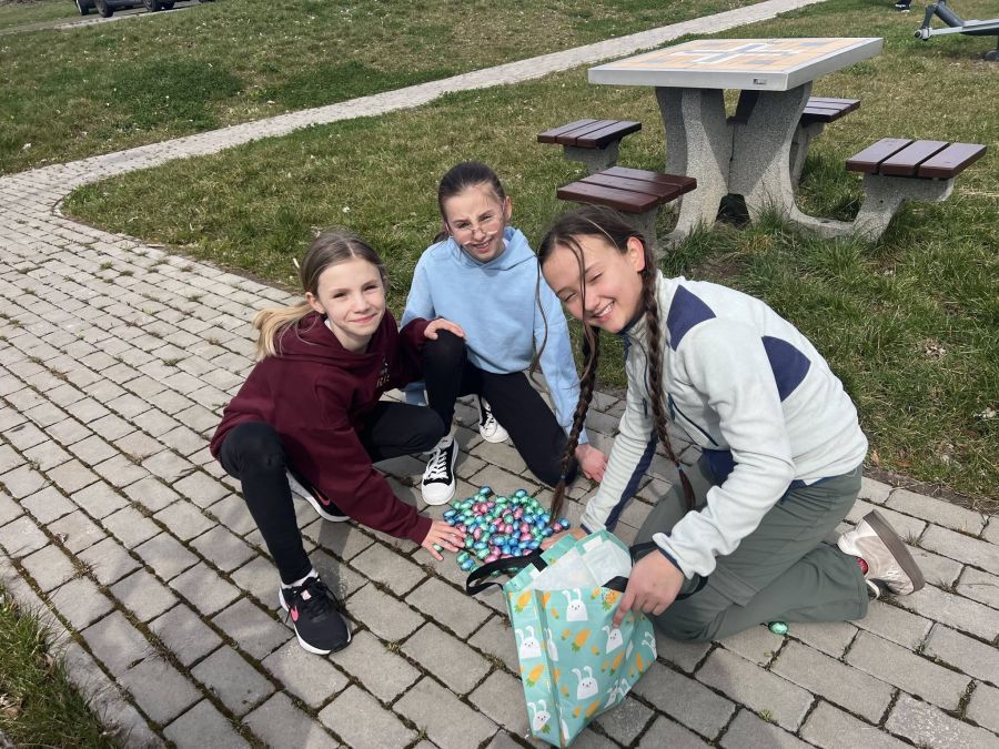 Tuż przed przerwą świąteczną uczniowie 5b wzięli udział w radosnej zabawie wielkanocnej. Główną atrakcją było poszukiwanie ukrytych jajek na placu zabaw. W sumie przygotowano aż 140 jajek. Wyzwanie wymagało od piątoklasistów nie lada sprytu i sokolego wzroku! Zabawę zorganizowały uczennice Felicja, Julka i Ola, które zadbały o jej sprawny przebieg i świetną atmosferę. Dodatkowo Rada Rodziców przygotowała dla wszystkich uczniów słodkie upominki, które były miłym zakończeniem zabawy. Wszyscy uczestnicy bawili się doskonale, a wydarzenie wprowadziło wszystkich w radosny nastrój oczekiwania na Wielkanoc.