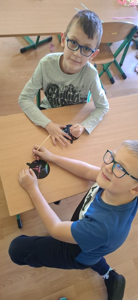 UCZNIOWIE WZIĘLI UDZIAŁ W ZAJĘCIACH TEMATYCZNYCH DOTYCZĄCYCH kosmosu. Wykonali prace plastyczne ” W kosmosie „.